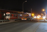 Ferrovia Lugano - Ponte Tresa (FLP). Il treno è stato caricato a Caslano all'altezza del passaggio a livello sulla strada cantonale. Nella notte il convoglio di camion